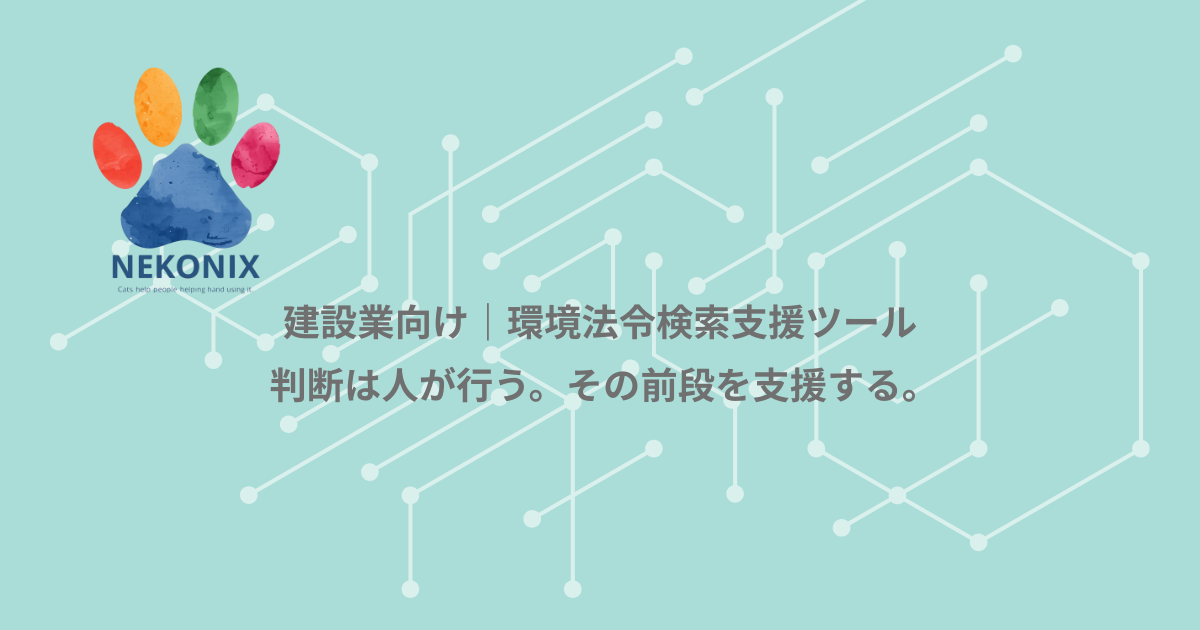 環境法令検索ツール「ネコタス」を運営しています。